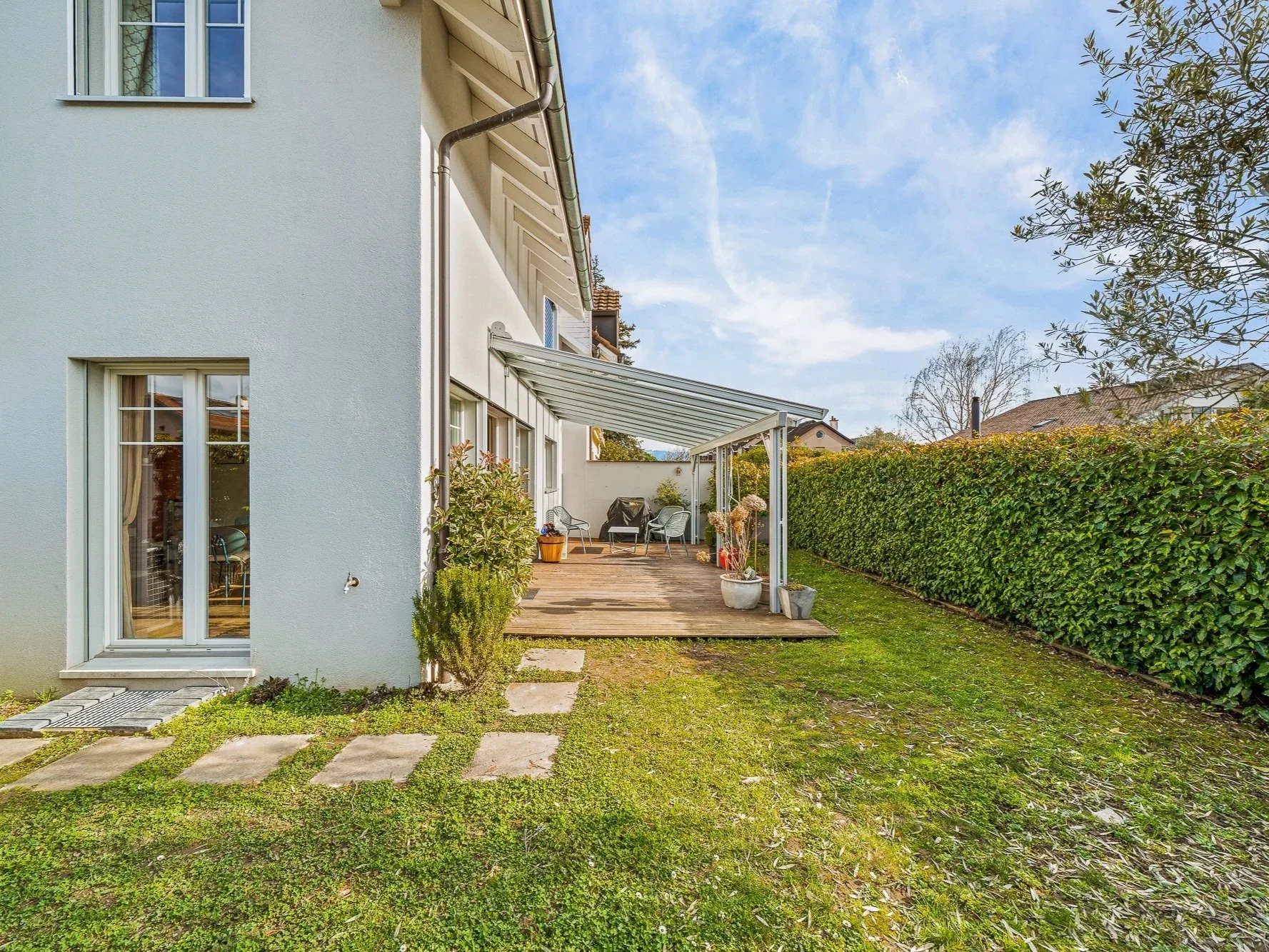 Dans un écrin de verdure au sein d’un quartier résidentiel paisible, à quelques minutes des axes majeurs de la région lémanique, B-PROPERTIES vous propose en co-exclusivité cette spacieuse propriété mitoyenne, répartie sur trois niveaux habitables et un sous-sol aménagé et construite sur une belle parcelle de 620 m2.