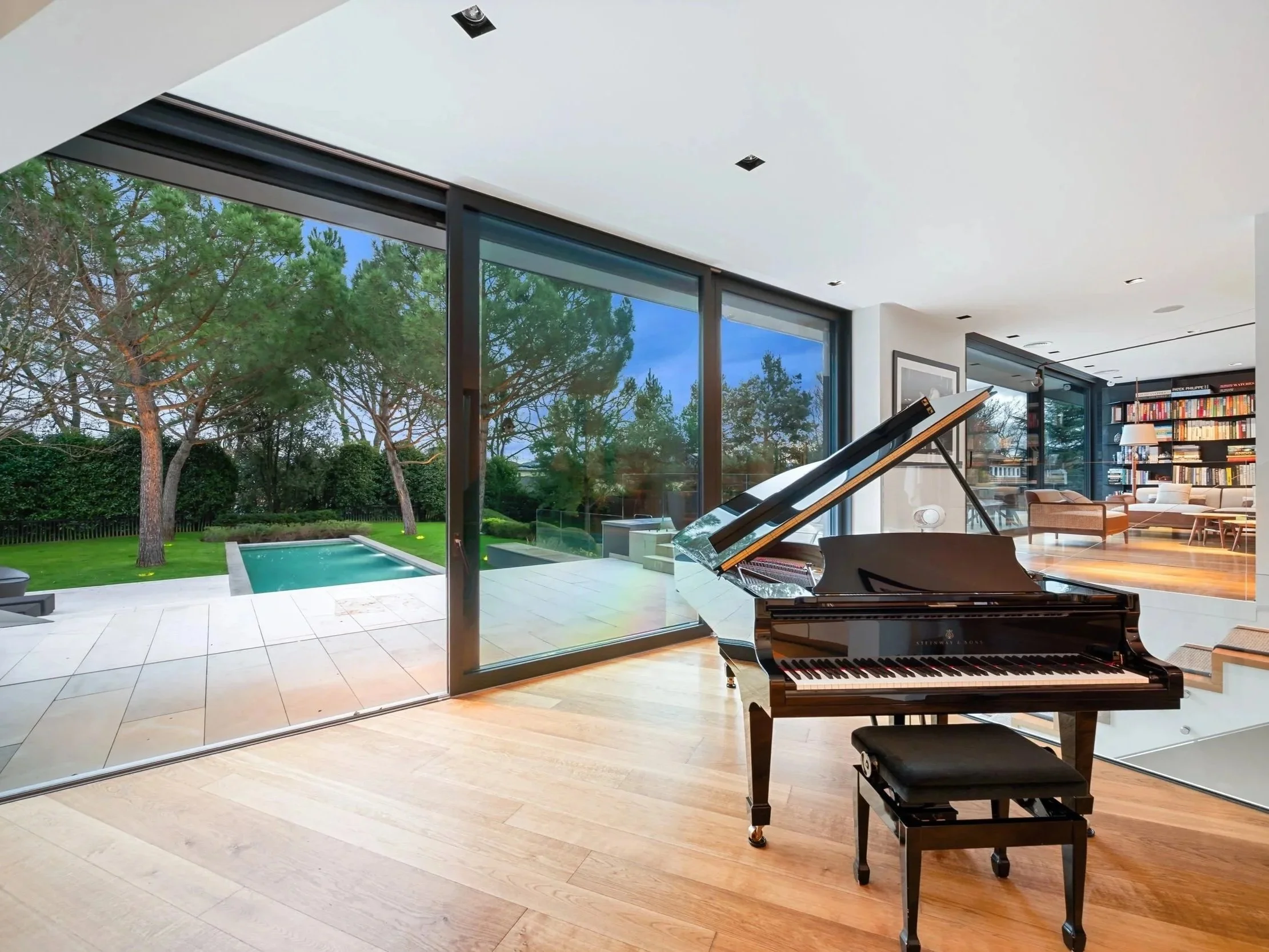 Un majestueux hall d’entrée accueille les visiteurs, avec un superbe escalier conçu par l’architecte italien Pierre Lissoni. Le vaste salon offre une vue imprenable sur la piscine intérieure. La salle à manger, dotée d’une cheminée, et la grande cuisine équipée d’appareils haut de gamme, avec son espace repas, complètent cet espace de vie convivial. Deux chambres, chacune avec son dressing et sa salle de bain attenante, ainsi qu’une troisième chambre, équipée d’une kitchenette et d’une salle de bain, viennent parfaire ce niveau.